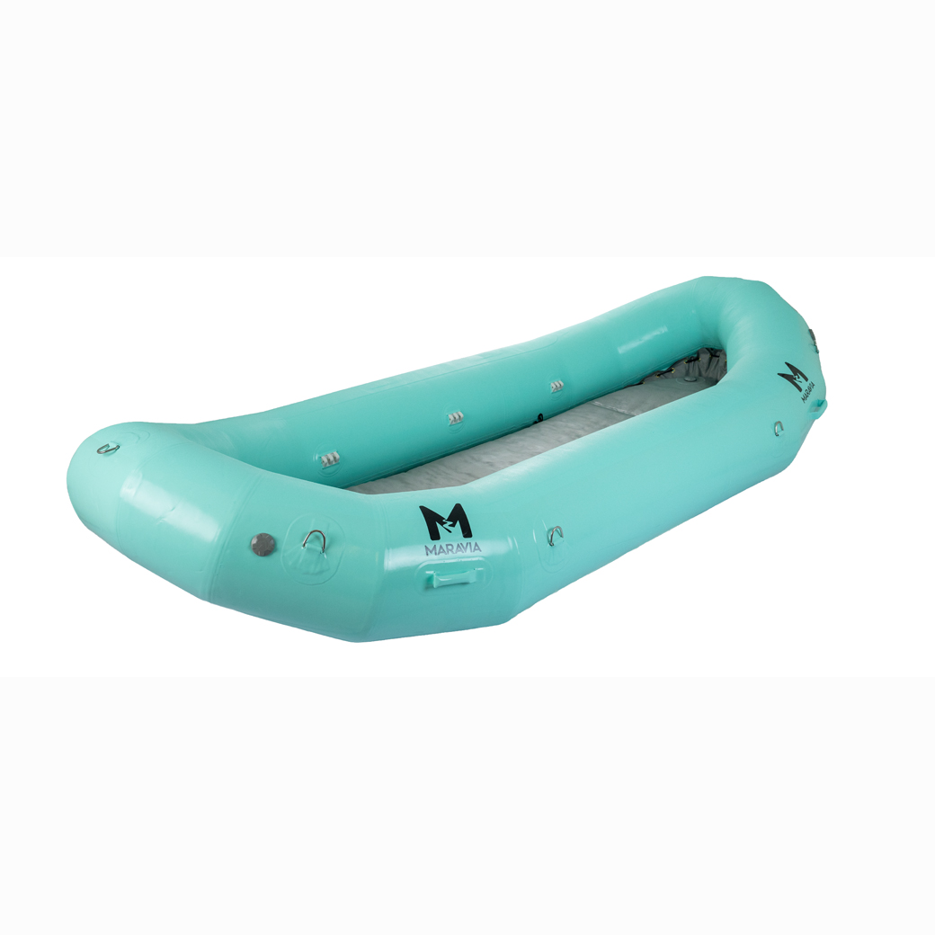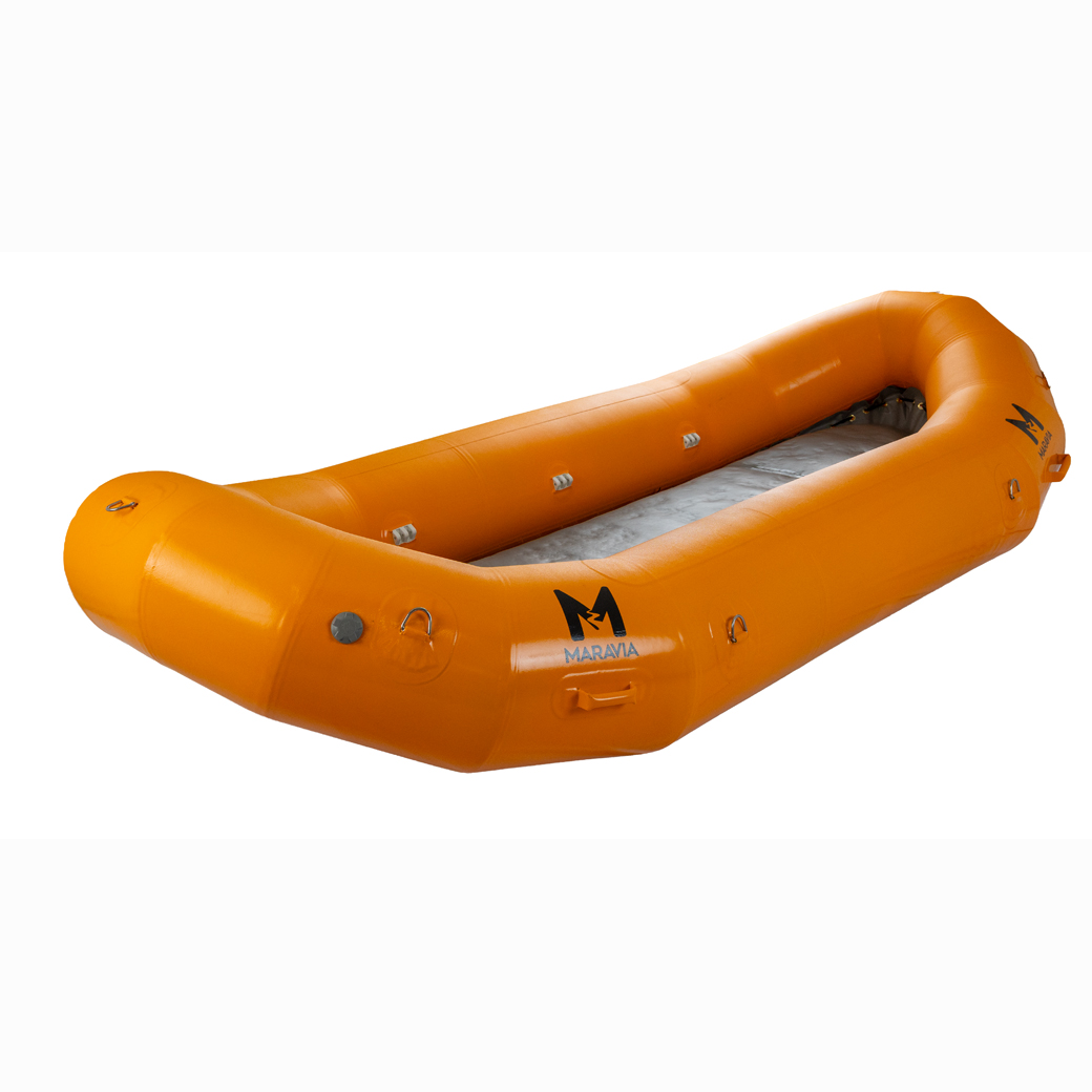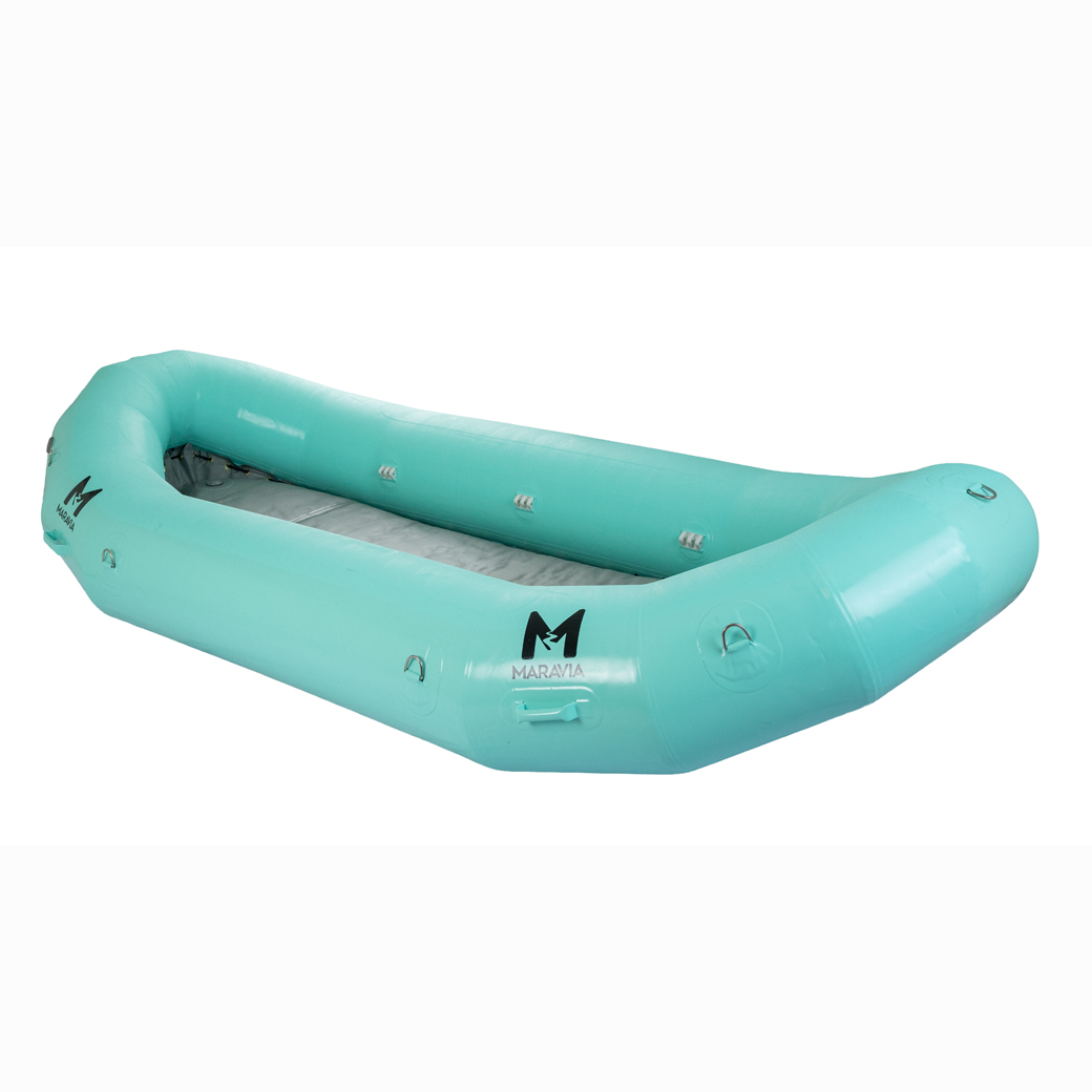 The Maravia Scout is perfect for tight squeezes on multi-day expeditions or install 3 thwarts and it will be your go-to for splashy fun. The Scout outshines other models in low water conditions and paddle boating being that it’s very nimble, reacts quickly and easy to maneuver through rapids. The diminishing tubes allow for more room in the bow and stern and lower profile in the wind. The 70” long straight section creates a perfect platform for an oversize box and cooler and 2-3 people when rowing. Install up to 3 thwarts and you have a fun paddle rig for up to 7.