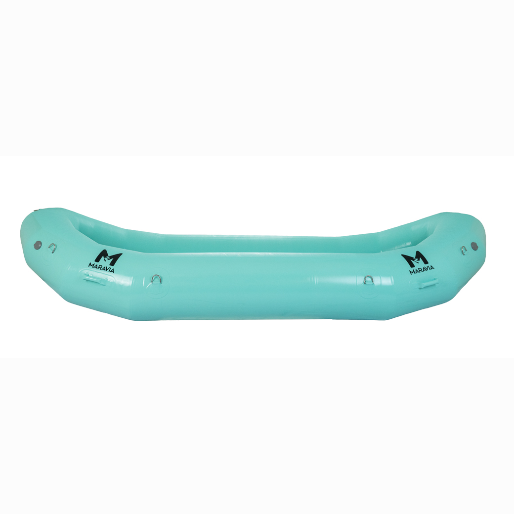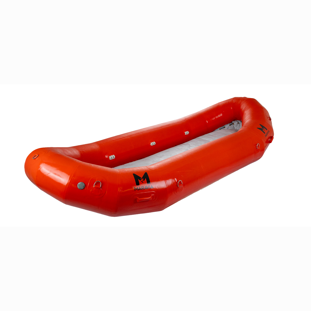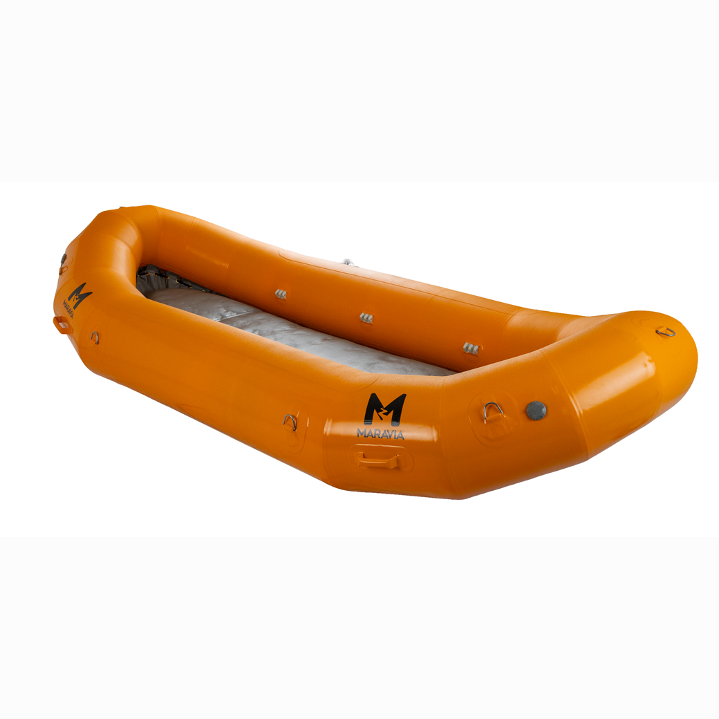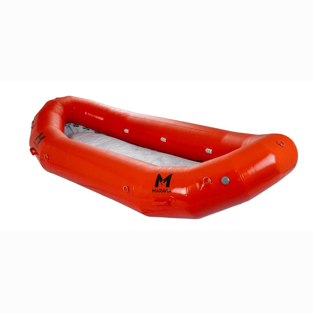 The Maravia Scout is perfect for tight squeezes on multi-day expeditions or install 3 thwarts and it will be your go-to for splashy fun. The Scout outshines other models in low water conditions and paddle boating being that it’s very nimble, reacts quickly and easy to maneuver through rapids. The diminishing tubes allow for more room in the bow and stern and lower profile in the wind. The 70” long straight section creates a perfect platform for an oversize box and cooler and 2-3 people when rowing. Install up to 3 thwarts and you have a fun paddle rig for up to 7.