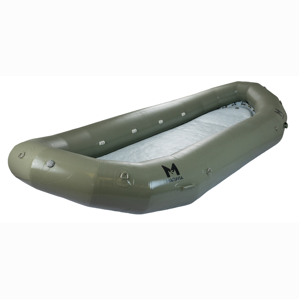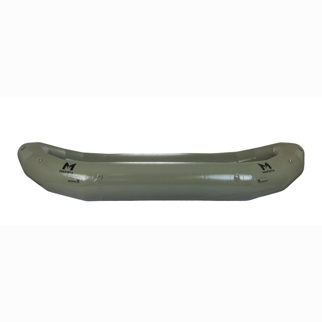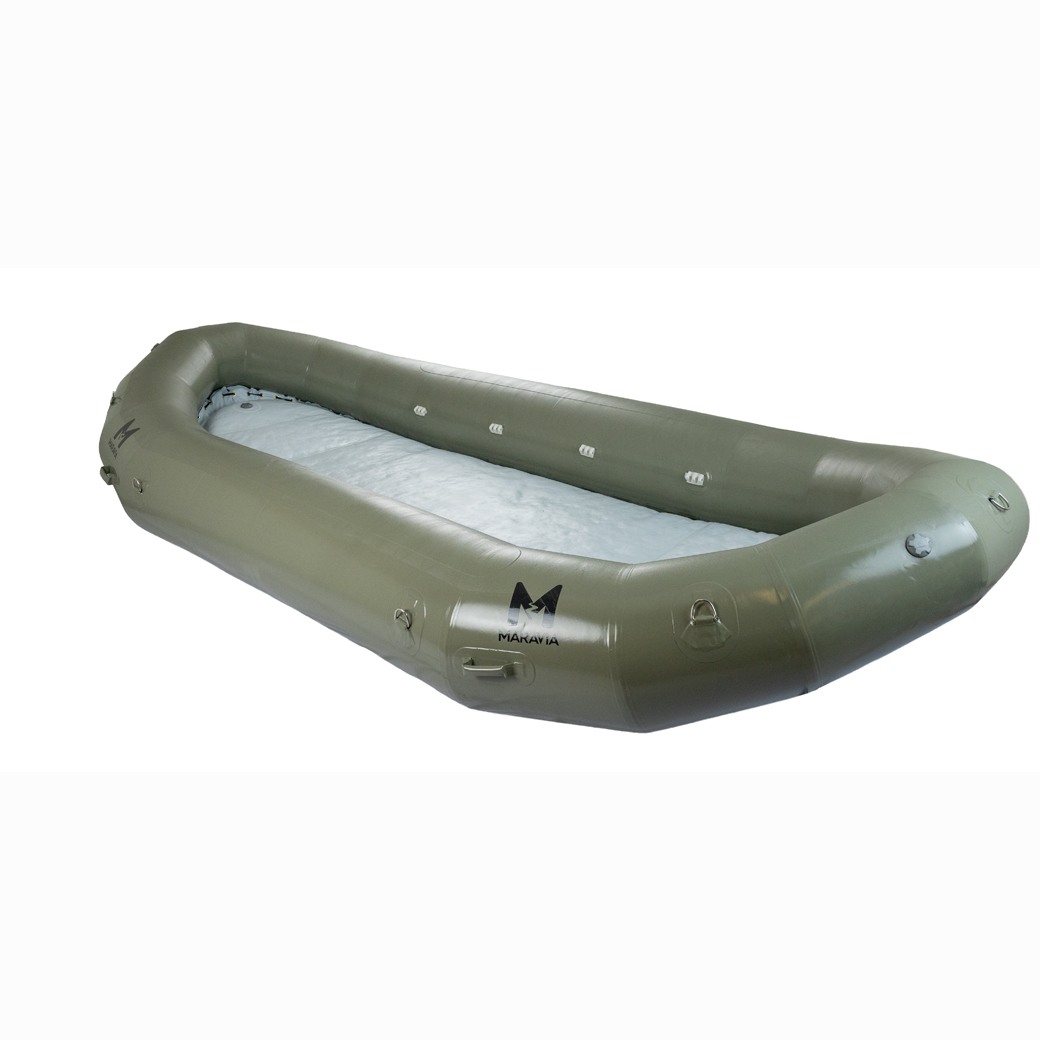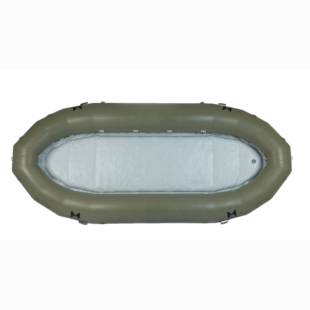 The Typhoon has reduced tube size in bow and stern to add extra room for people and gear. You will appreciate the reduced wind resistance of the smaller tubes on those long calm stretches with afternoon upstream winds. The Typhoon, sized between a Williwaw 2 and Mistral, is 16’ long, 7’ 6″ wide, with 22″ tubes diminishing to 16 inches. Install up to 4 thwarts get your paddle crew and hit the water.