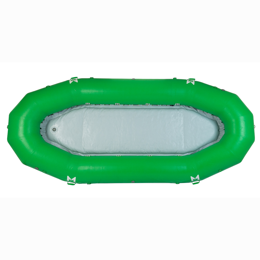 The One Point Five, at 15 feet long with 21″ diameter tube, is comfortable on a wide range of rivers. Comes standard with attachments for four thwarts. Four thwarts provide the best set-up to paddle up to nine people.